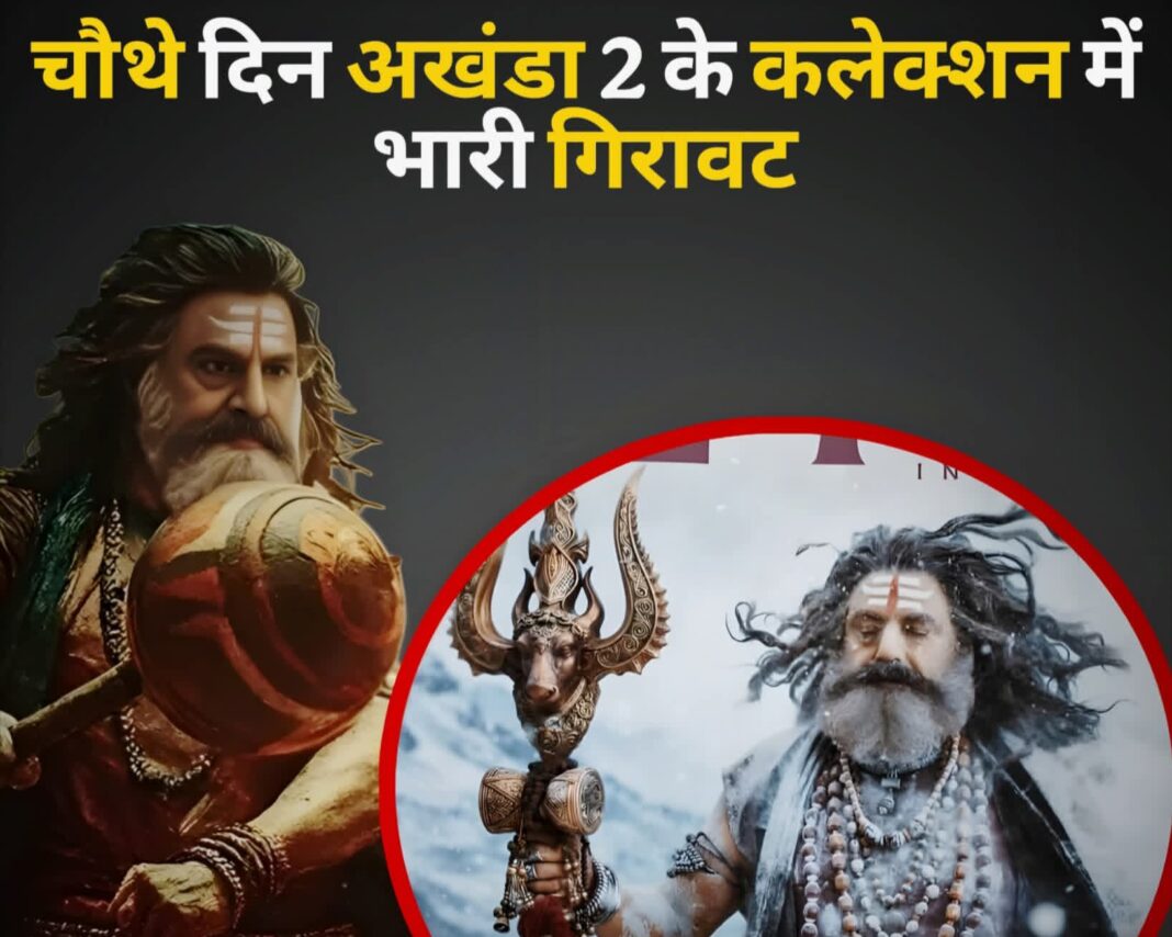 अखंडा 2 का कलेक्शन लगातार गिरता जा रहा है और अब चौथे दिन भी कमाई में भारी गिरावट देखने को मिली है। रिपोर्ट्स के मुताबिक, अखंडा 2 ने पहले दिन 30.5 करोड़ रुपये, दूसरे दिन 15.5 करोड़ रुपये और तीसरे दिन 15.1 करोड़ रुपये की कमाई की थी। वहीं चौथे दिन फिल्म की कमाई घटकर सिर्फ 5.35 करोड़ रुपये रह गई। इस तरह चार दिनों में फिल्म ने कुल 66.45 करोड़ रुपये का कलेक्शन किया है।